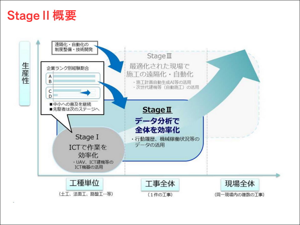 現場間における情報共有を見据えて、ICT施工StageⅡの概念を導入しました。