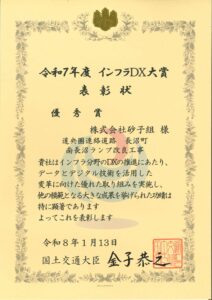 昨年12月17日に受賞した「令和7年度インフラDX大賞」の授与式が、