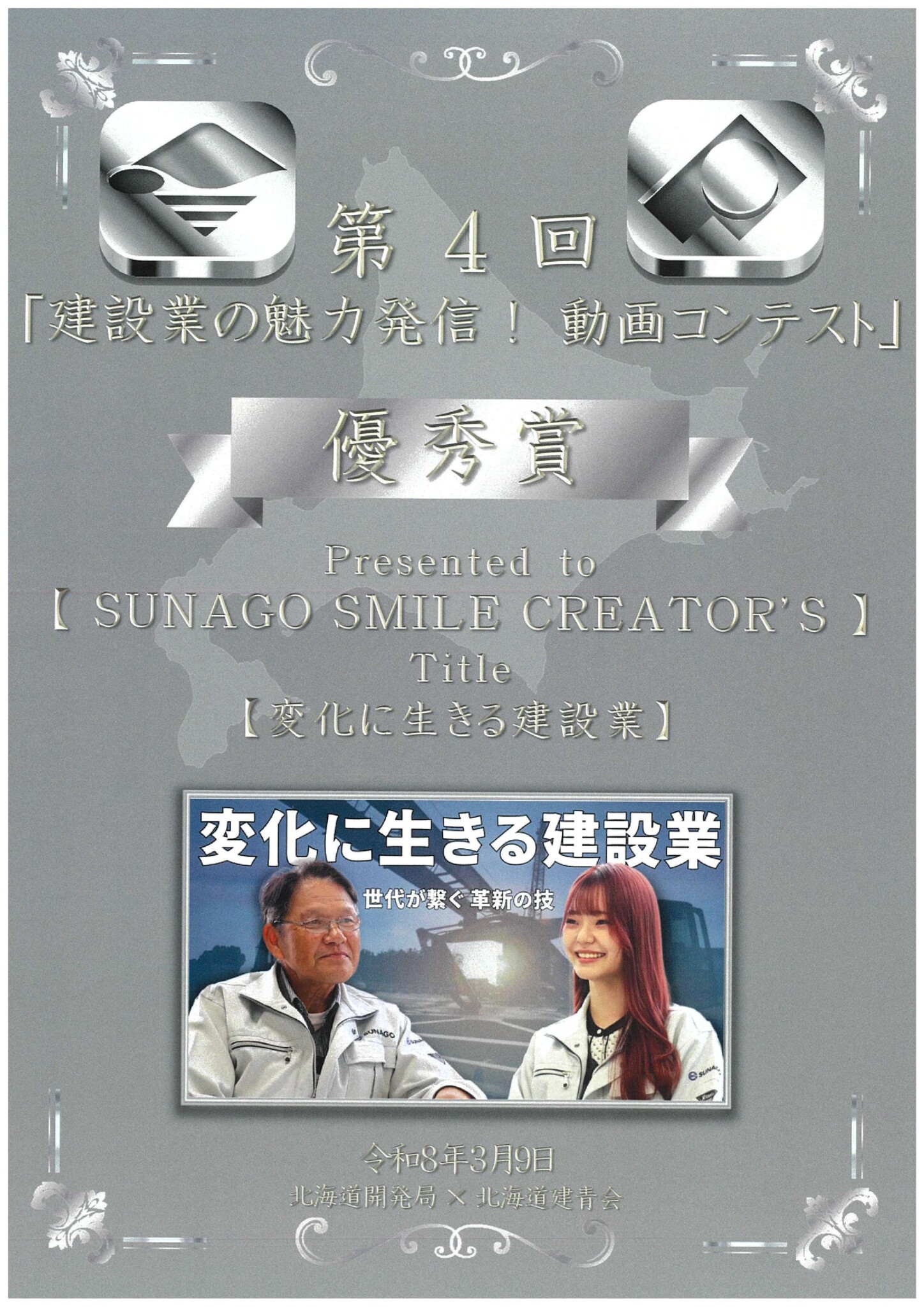 弊社が制作した『変化に生きる建設業』が優秀賞を受賞いたしました。