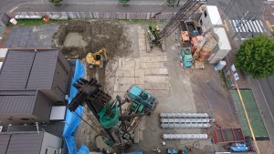 本日は朝から暖かく、現場の周辺の通勤、通学者の方々の中に