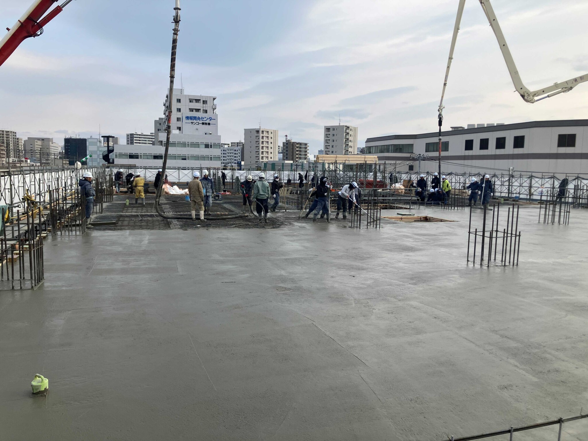 年内の工程目標はR階の機械室等のコンクリート打設完了になります。