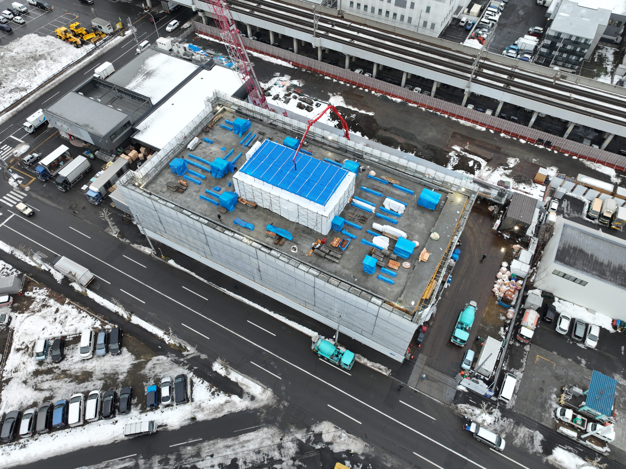 現場の状況ですが1月21日に屋上のハト小屋、機械基礎のコンクリート打設が完了しました。