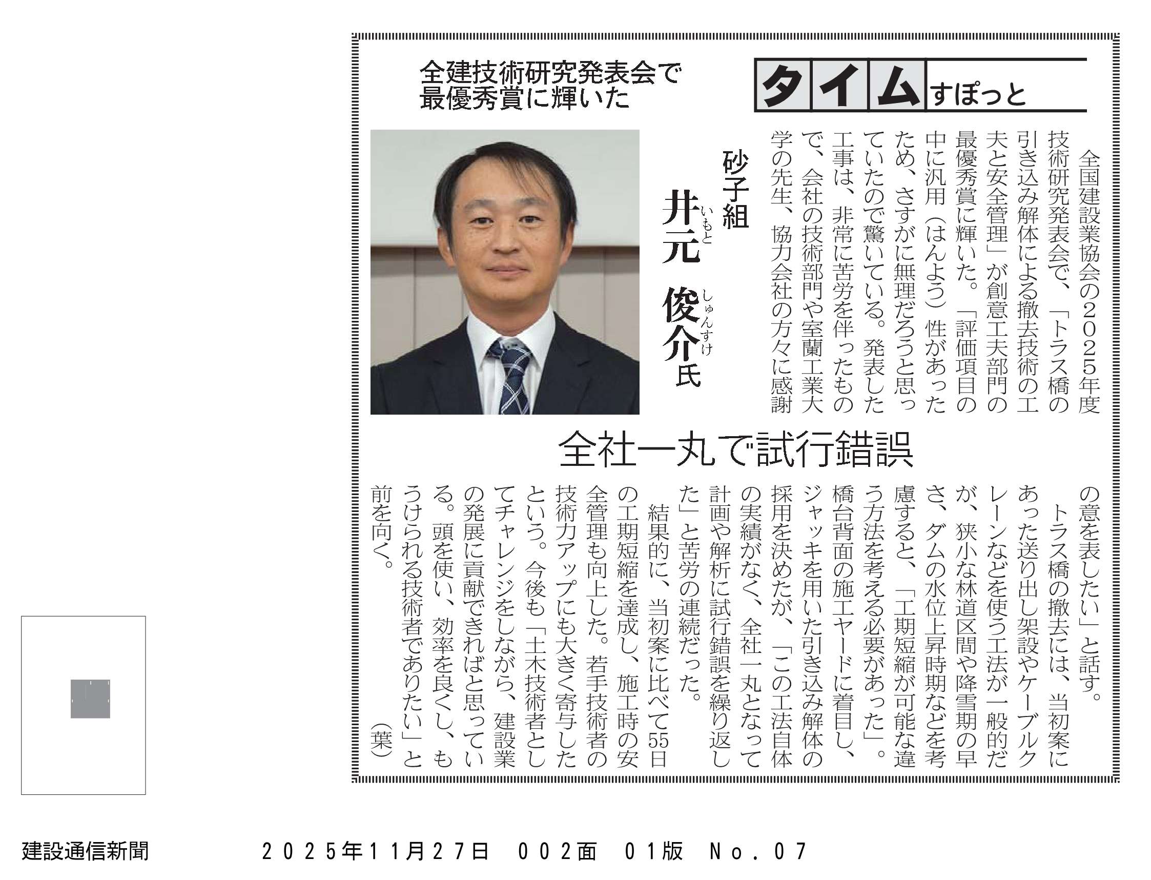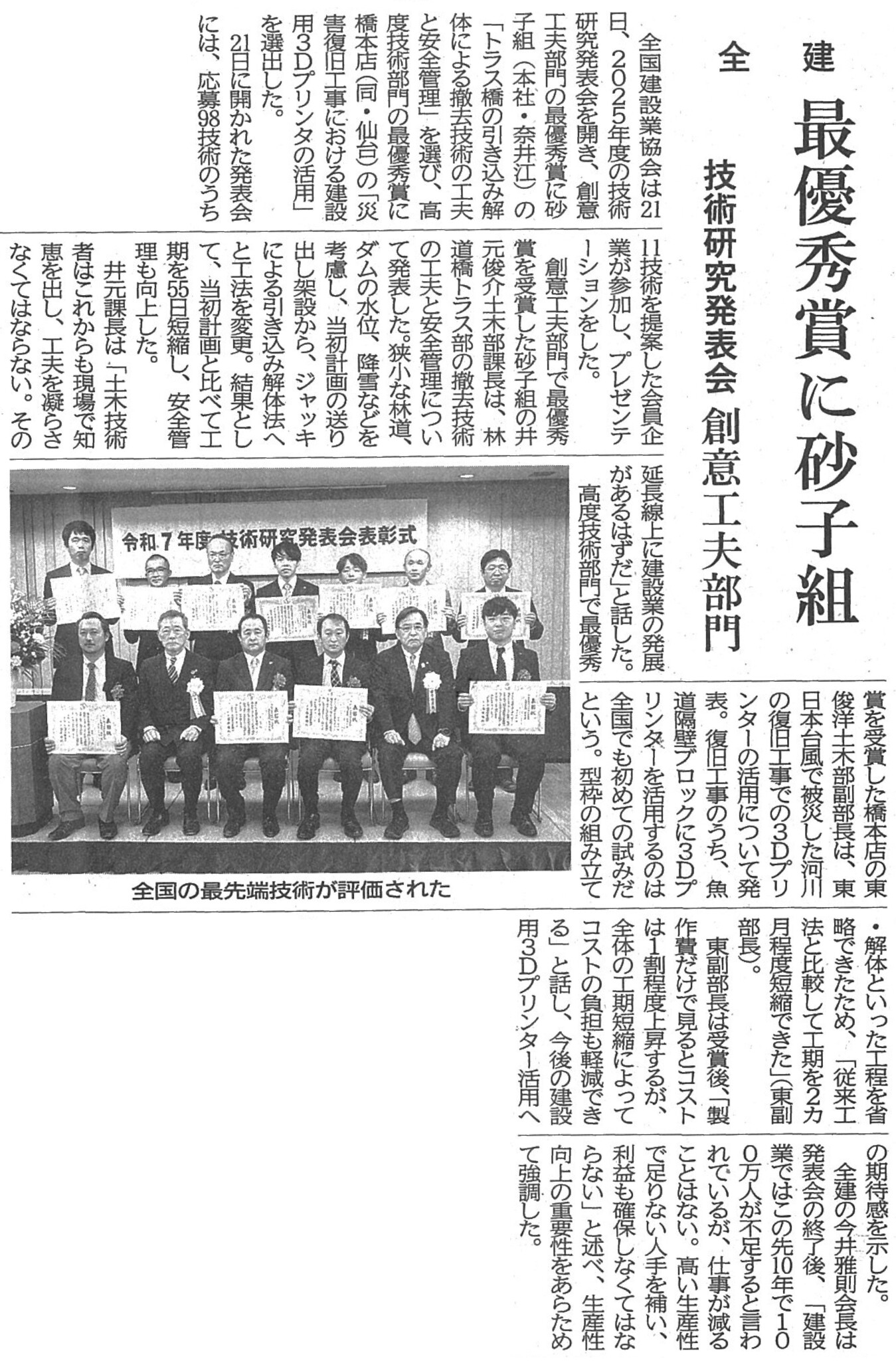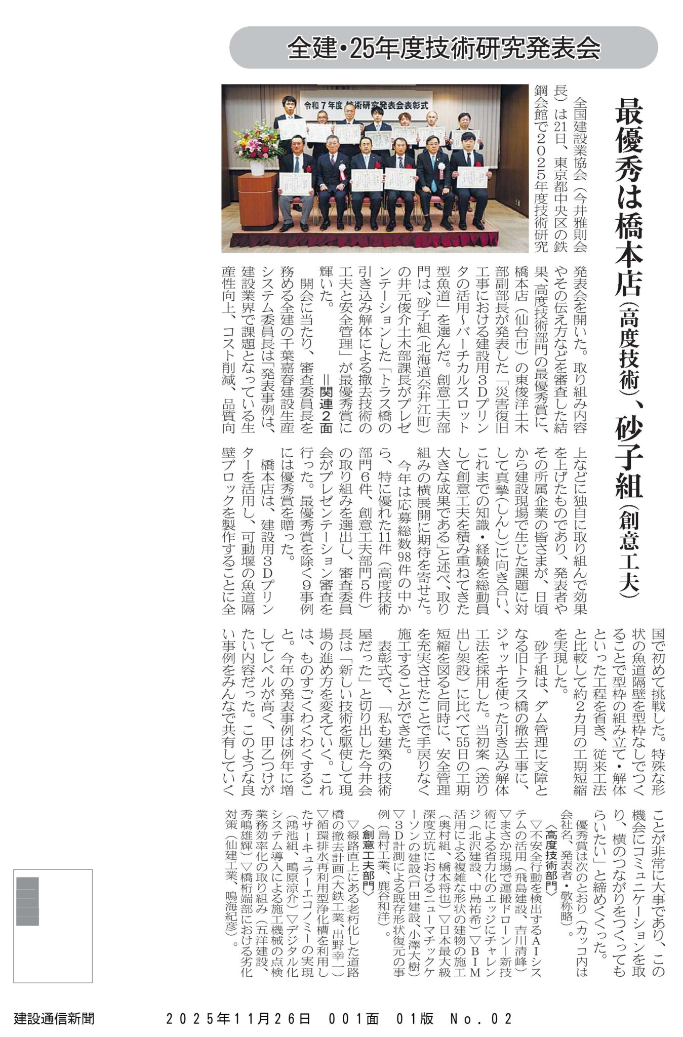 「全国建設業協会 2025年度技術研究発表会」に関する記事が掲載されました。