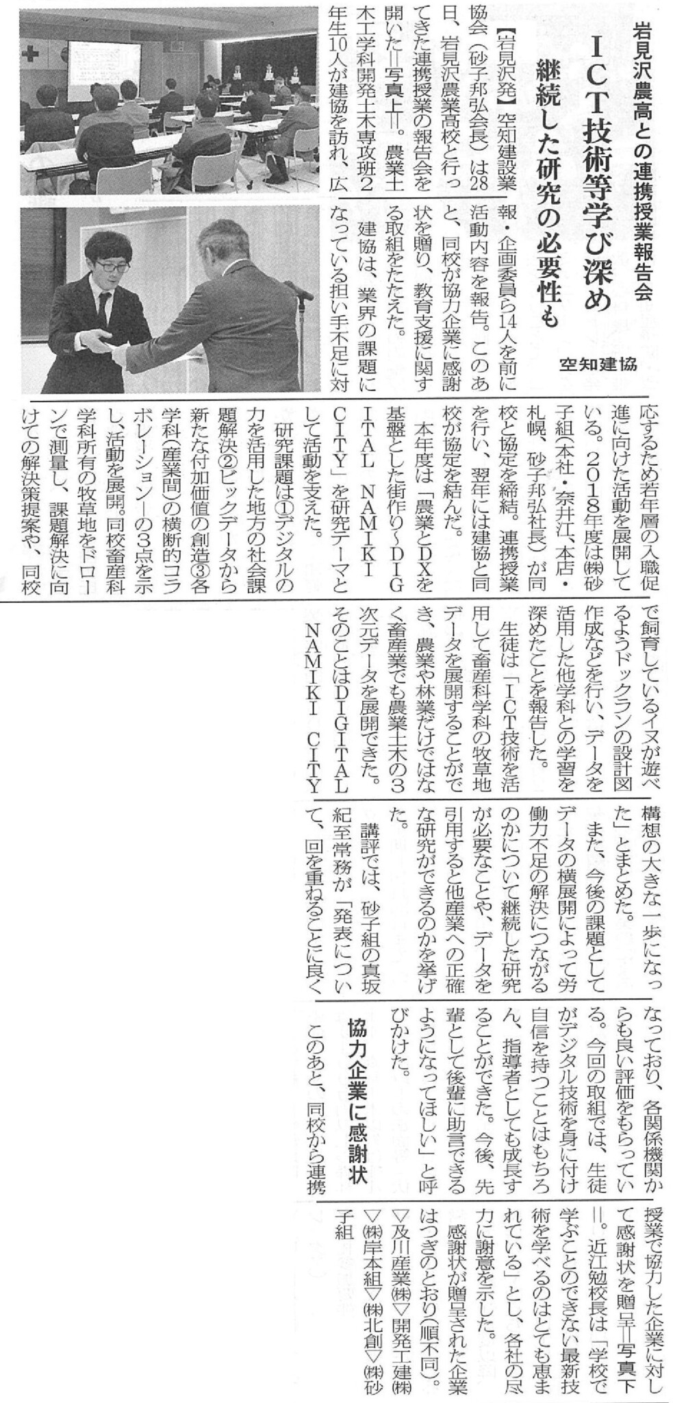 以上2紙に、岩見沢農業高校との連携授業研究報告会に関する記事が掲載されました。