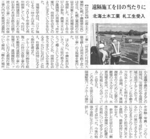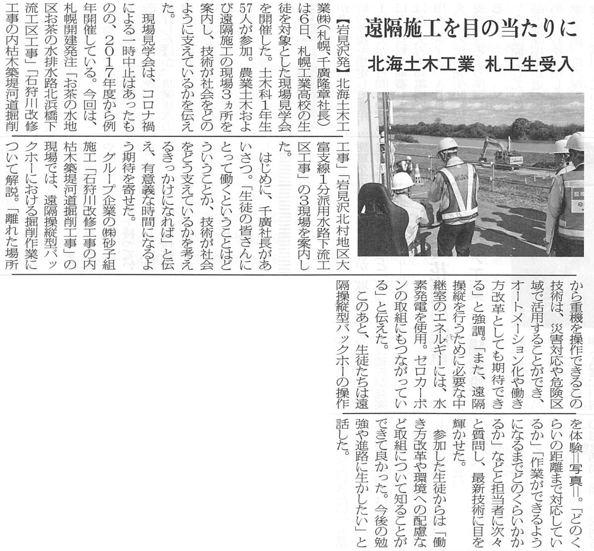 10月6日、グループ企業である北海土木工業株式会社が主催する現場見学会が行われ、 札幌工業高校の土木科1年生57人が弊社の遠隔施工現場を訪れました。
